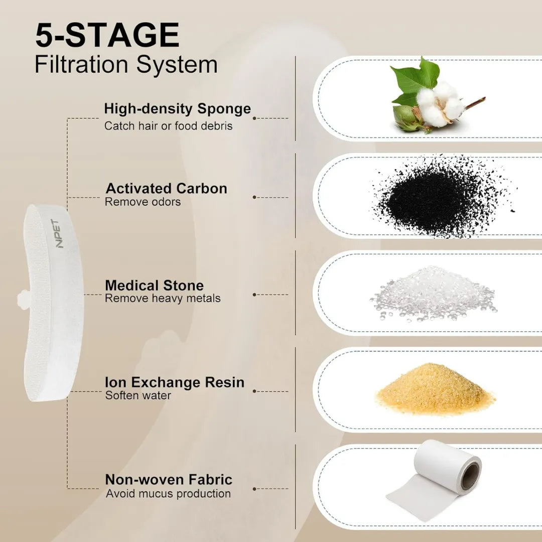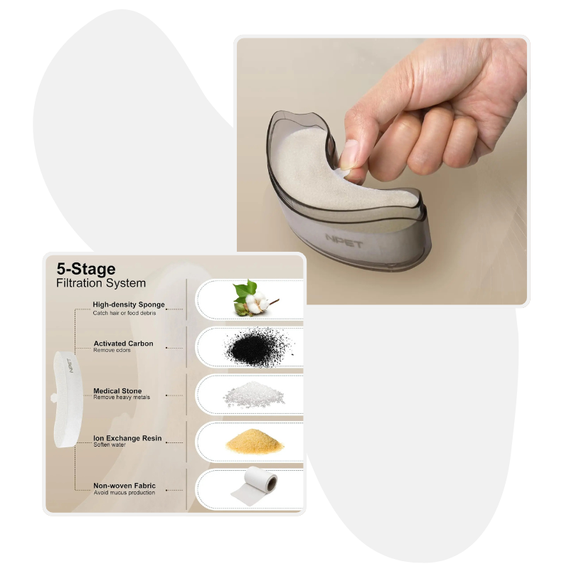 Tip: For best performance, clean the fountain and replace filters/sponges every 2–4 weeks depending on water quality and number of pets.